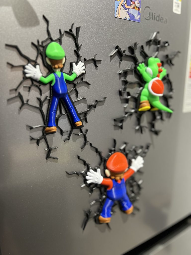 En TresDex, hemos diseñado el accesorio definitivo para los verdaderos fans: un set exclusivo de imanes con un divertido y detallado diseño de Mario, Luigi y Yoshi estrellados.