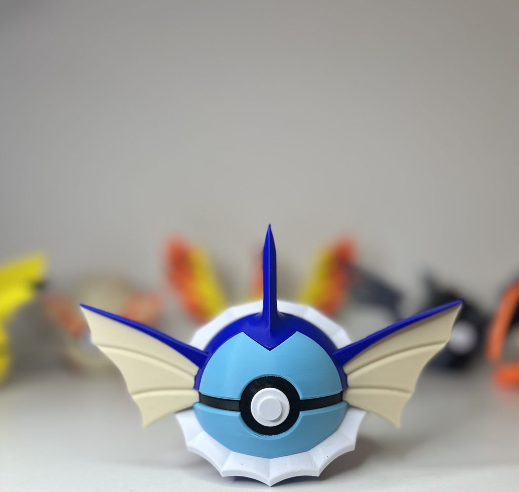 • Diseño de Adaptación: Los relieves están inspirados en la estructura biológica de Vaporeon, logrando una simetría que evoca el movimiento constante del agua.