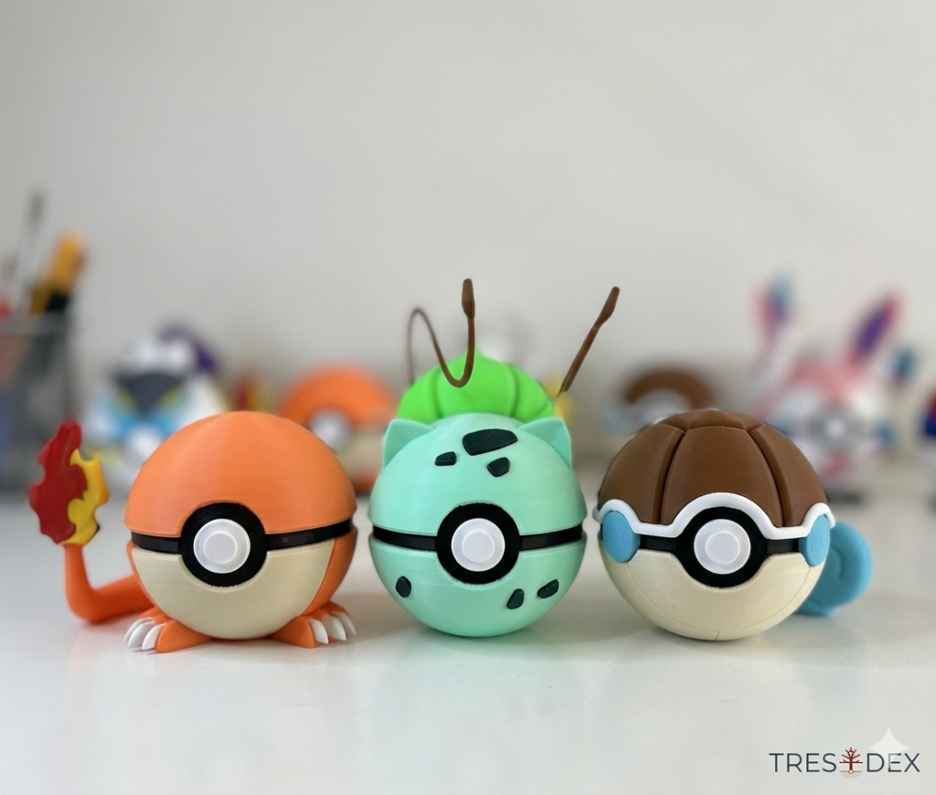 • Detalles Premium de Impresión 3D: Cada Pokebola temáticas ha sido diseñada y texturizada con precisión para reflejar la esencia de cada Starter. Se nota el relieve táctil del PLA+ de alta definición.